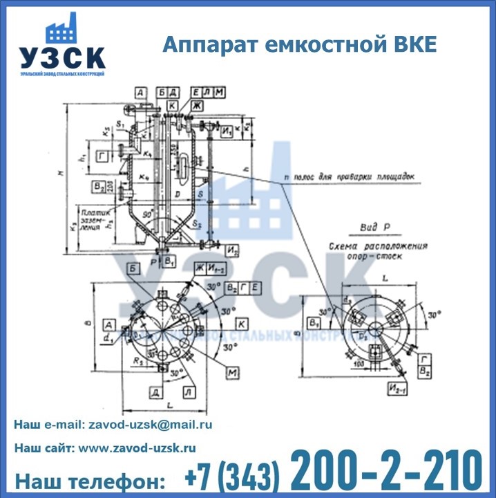 Уральский завод стальных конструкций готов выполнить заказы на изготовление емкостей ВКЭ объемом от 0,04 до 100 м3 в соответствие с требованиями ГОСТ 9931-85. Мы готовы выполнить цельносварной и разъемный корпус, рассчитанный на работу под давлением 0,6 или 1,0 МПа. Изготовленная продукция имеет номер, паспорт и гарантию на 18 месяцев со дня начала работы. Сосуды предназначены для наземного размещения. Опорные стойки или лапы привариваются к изделию по месту установки.