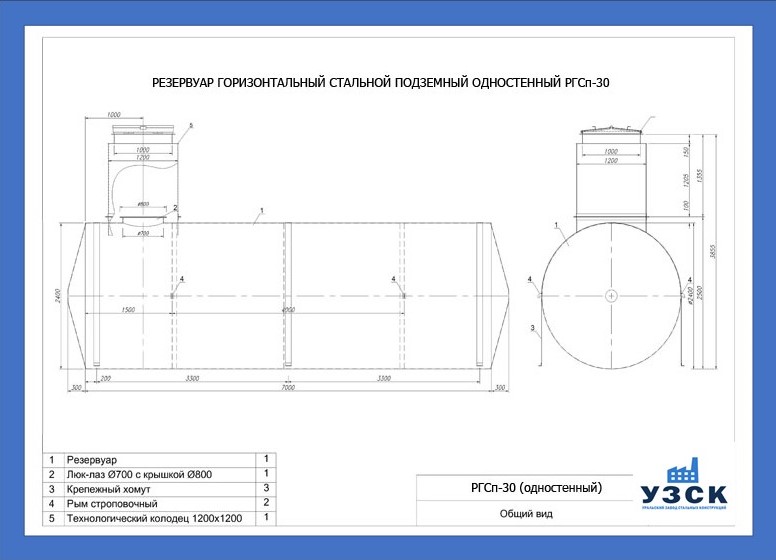 Описание стандартного резервуара РГС-30